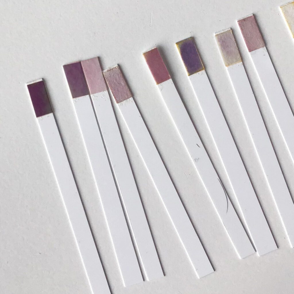 We propose two methods of testing. Please use the method B if you want to be sure that there will be no purple traces on your fabrics and other materials.