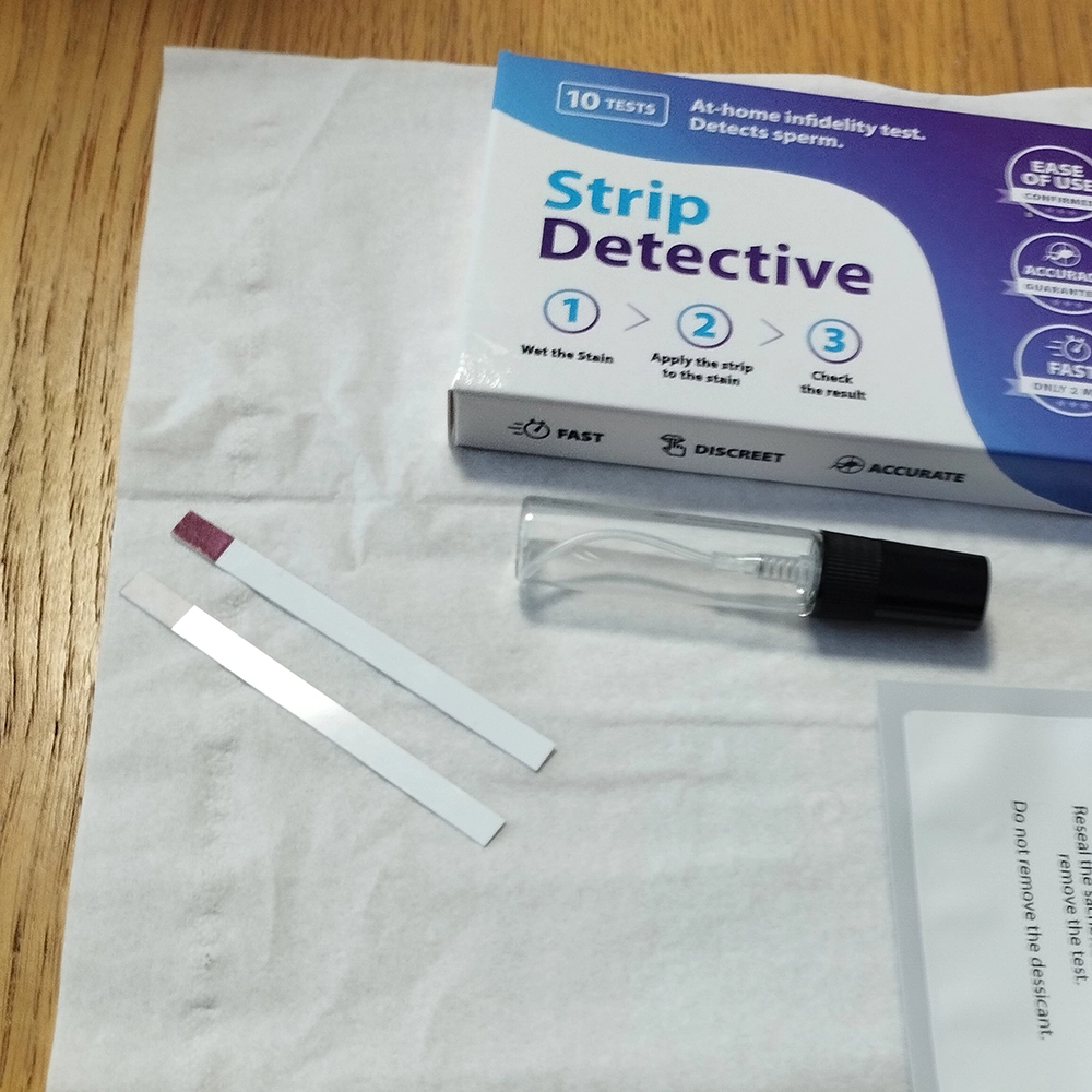 Strip Detective is a test analogous to those used in forensic investigations. Its purpose is to detect acid phosphatase, which is specific to semen. A positive test result confirms the presence of acid phosphatase in the tested material as preliminary evidence of the presence of sperm in the tested material.