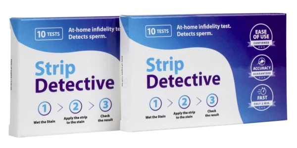 Dzięki domowemu testowi na niewierność w ciągu zaledwie 1 minuty możesz potwierdzić, czy badana plama jest wolna od nasienia (test pokaże wówczas wynik negatywny). Możesz zbadać dowolny materiał: spodnie, prześcieradło, armaturę, wkładki higieniczne i inne. Możesz zbadać także stare, zaschnięte plamy. Strip Detective wykrywa kwaśną fosfatazę obecną w dużym stężeniu w spermie. Działa nawet w przypadku plam gdzie nasienie jest rozczieńczone w stosunku 1:200 z innym materiałem.